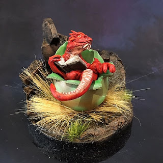 He comes in two parts the dragon and the egg. I scratch built the base and rocks with foam, and extra long static grass for the nest. Thanks for looking.